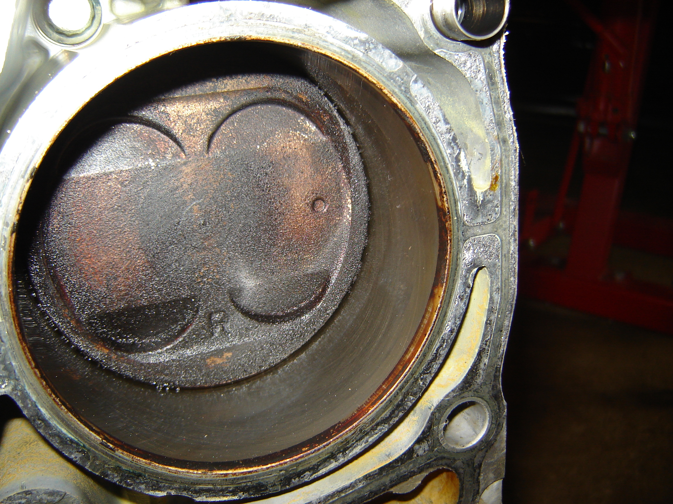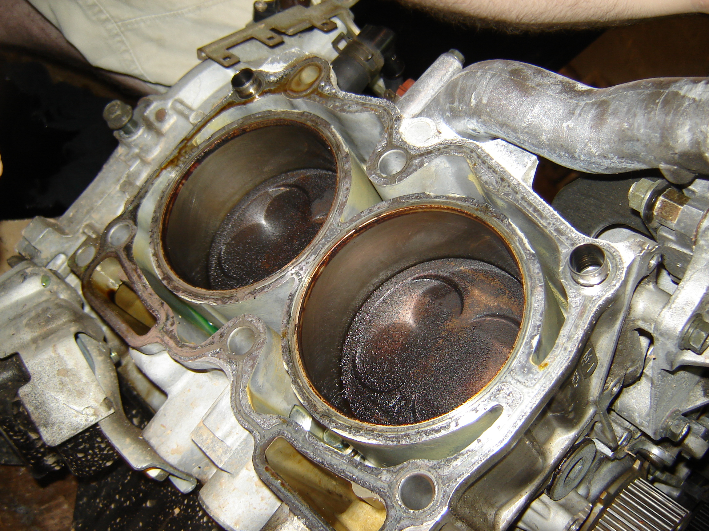 Once removed, you will clearly see the gasket. In the pictures provided, it is obvious that the OEM gaskets are not up to snuff, even on a low mileage engine as the one pictured. It is a complete mystery as to why Subaru would manufacture these this way, but it now seems to be water underneath the bridge. With your engine torn down to its short block, now is the time to have everything inspected. Make sure the heads are not warped in any way and check the pistons and cylinder walls for any abnormal wear. You should be able to still see and or feel the cross-hatching on the cylinder walls and the tops of the pistons can be cleaned in a careful manner.