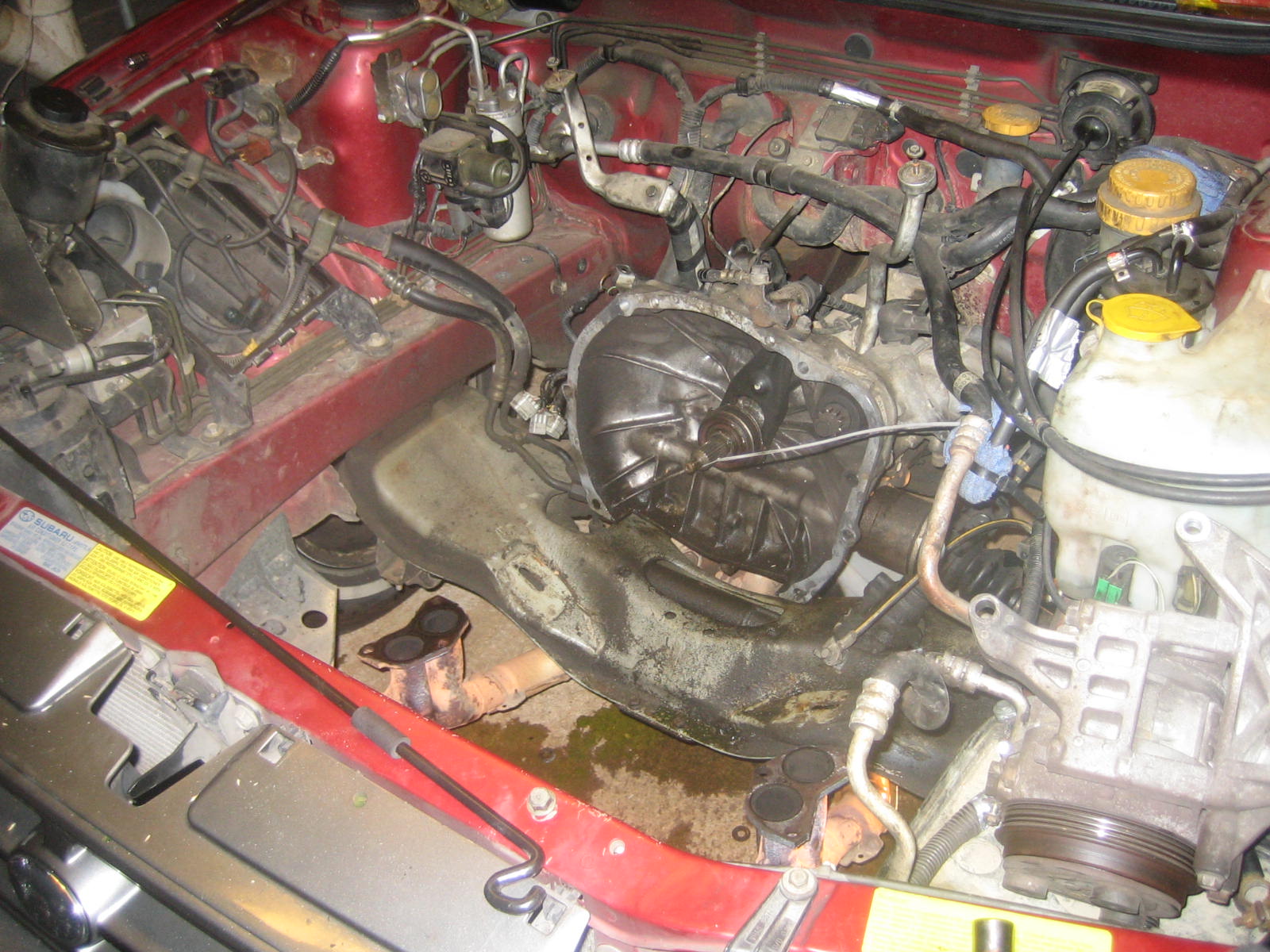 Pulling a Subaru engine is actually fairly simple. The Legacy/Outback bell-housing (connection of engine to transmission) has eight bolts. There are another two bolts for the engine mounts and a total of six for the exhaust headers. That’s 16 bolts to be unbolted and your engine is free. To start, disconnect the fuel pump sender to relieve the fuel pressure (attempt to start the car with this disconnected to “flush out the fuel”), remove the accessories (alternator, power steering pump and air conditioner) as well as the air box/intake.